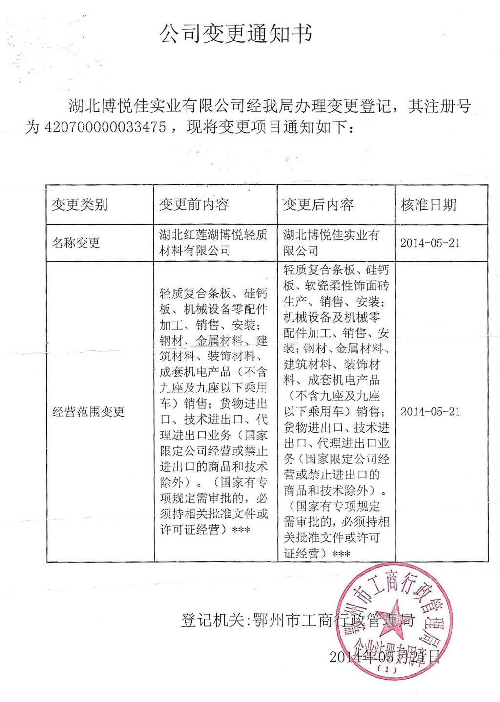 公司營業(yè)執(zhí)照 和 公司名稱變更通知書