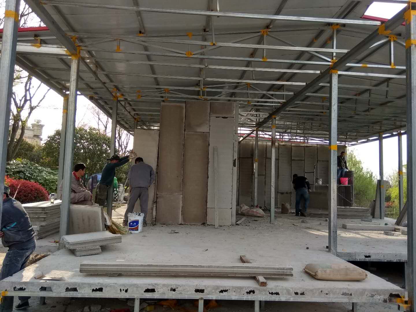 強(qiáng)度高、抗震性能優(yōu)異。由于在輕質(zhì)復(fù)合墻板的內(nèi)外兩側(cè)各增加了一層鍍鋅鋼絲網(wǎng)和高標(biāo)號輕集料混凝土。墻板的防盜性能、抗沖擊性能和抗震性能都遠(yuǎn)比其他砌筑墻體好。